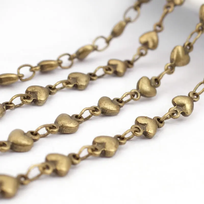 1 Meter Antique Bronze Brass Special Heart Link Chains Diy Jewelry Making Supplies Necklace Earrings Accessories for Women